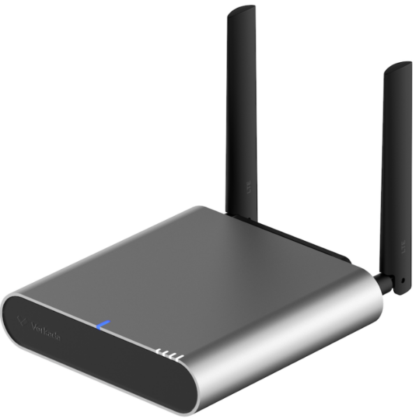 - LTE Cat 12 — Up to 600 Mbps for High-Resolution Camera Feeds: Cat 12’s three-carrier aggregation delivers peak downlink throughput up to 600 Mbps and uplink up to 150 Mbps, providing the upstream bandwidth required to stream high-resolution video from multiple Verkada cameras continuously to Verkada Command’s cloud platform without buffering, dropped frames, or degraded image quality.